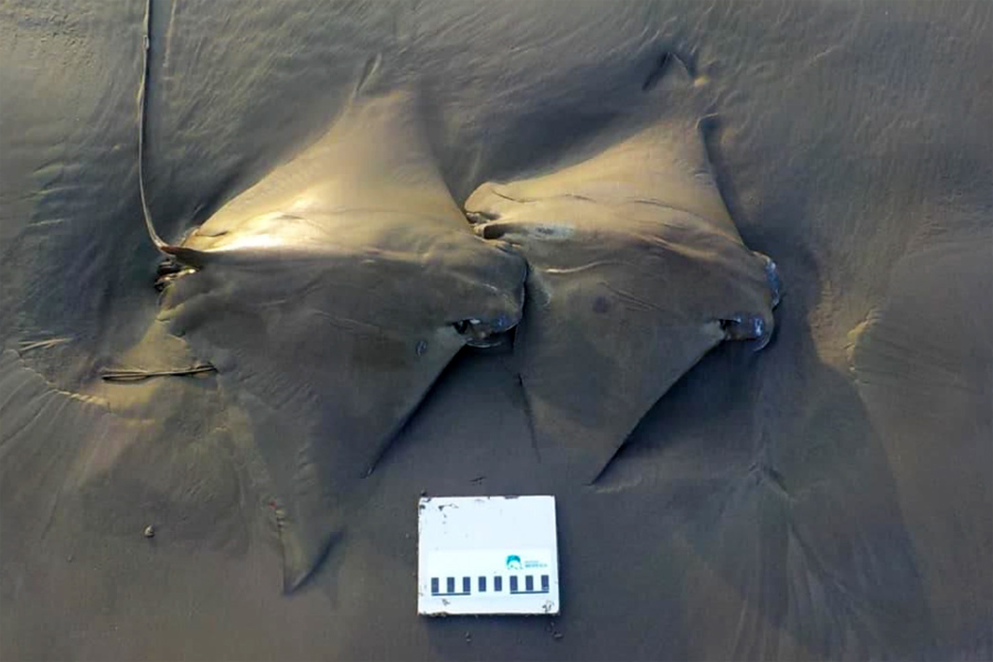 Raias ticonha são encontradas mortas na orla de Praia Grande