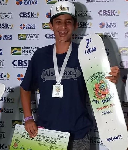 Mesmo com pouca idade, o adolescente Felipe Del Rosso Pires Campos, de 14 anos, coleciona títulos de skate na categoria iniciante. No ano passado, ele foi vice-campeão brasileiro de Park amador, além de campeão brasileiro de Bowl e Pool, em 2017. Mas os títulos ainda são poucos para o que ele deseja: chegar aos Jogos Olímpicos.