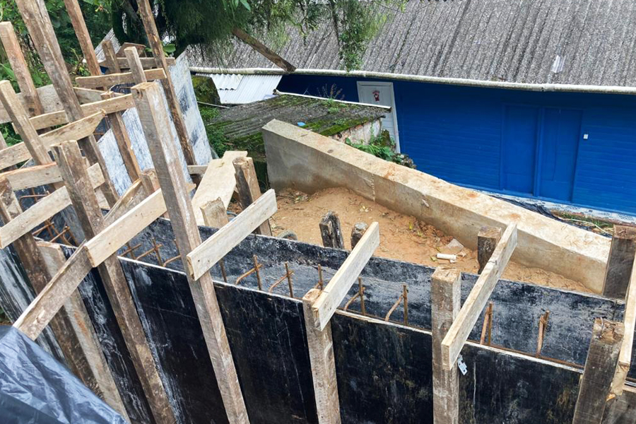 A construção dos muros de arrimo, em concreto armado, está em fase avançada, restando somente os acabamentos e a impermeabilização da área entre eles.