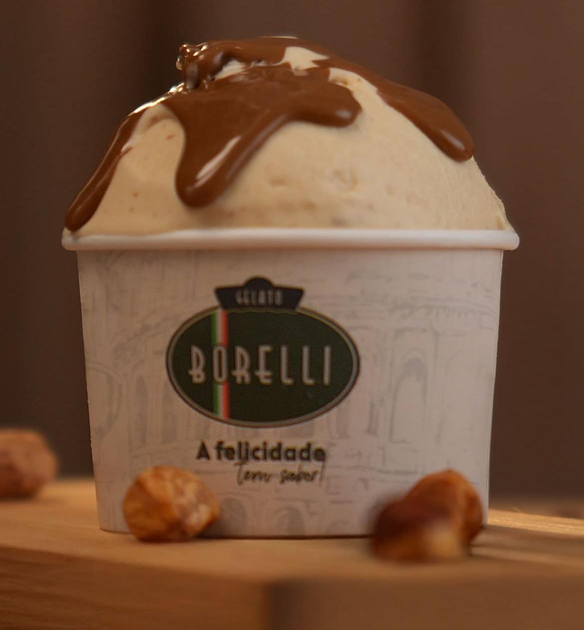 O grande diferencial da Gelato Borelli está na famosa casquinha crocante, que pode ser recheada com pistache ou chocolate, proporcionando uma experiência deliciosa.