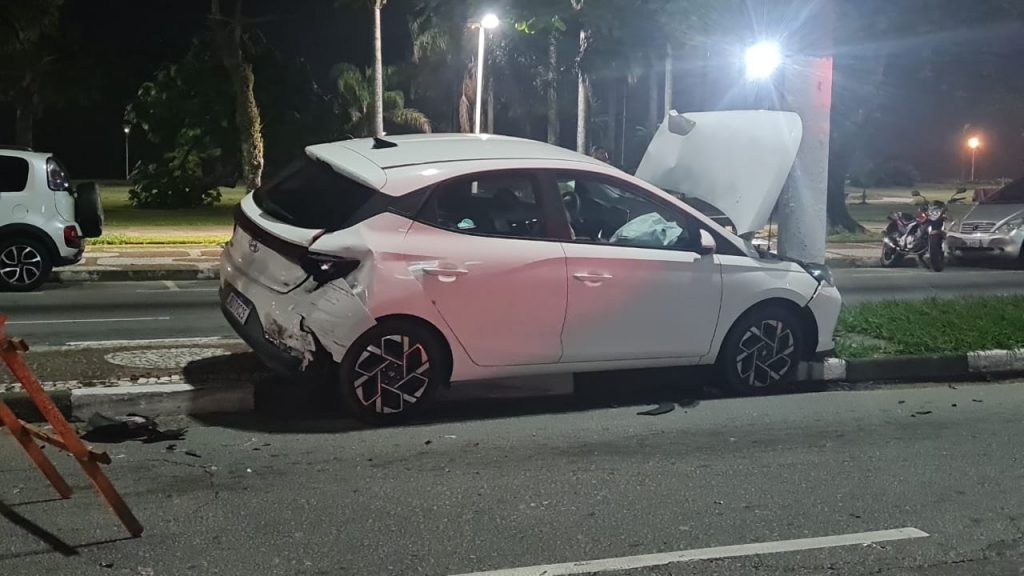Dois carros batem em postes e avenida precisa ser interditada em Santos
