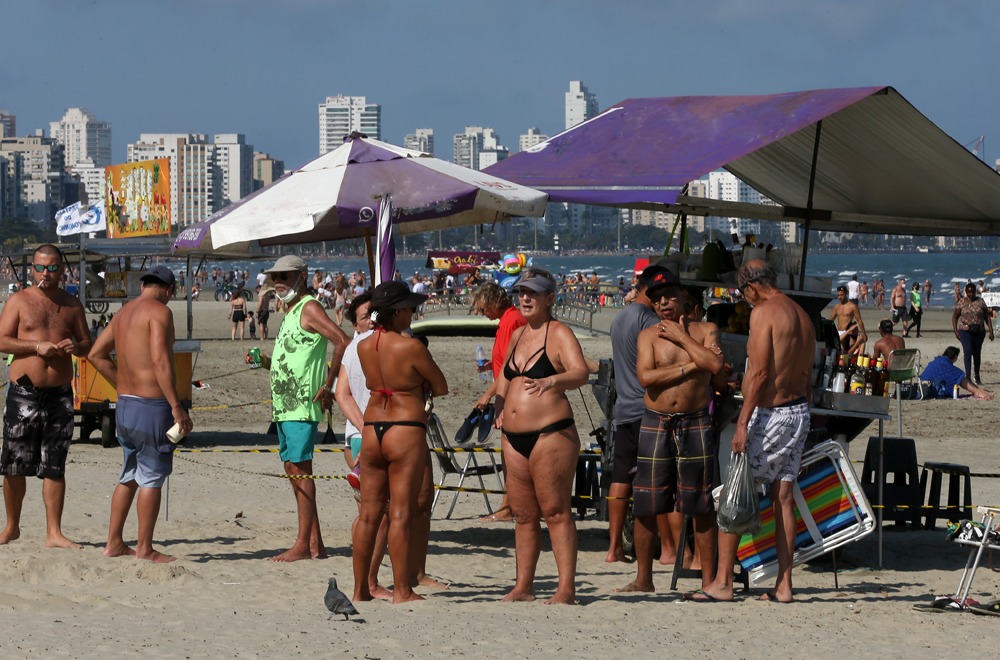 Feriado em Santos: praias cheias, aglomerações e banhistas sem máscara