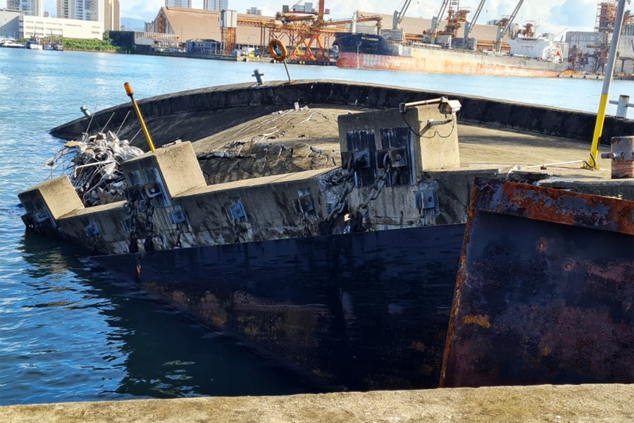 O píer foi reconstruído com o pagamento da indenização por parte da empresa responsável pela embarcação envolvida na colisão de 2021, a porta-contêineres Cap San Antonio.