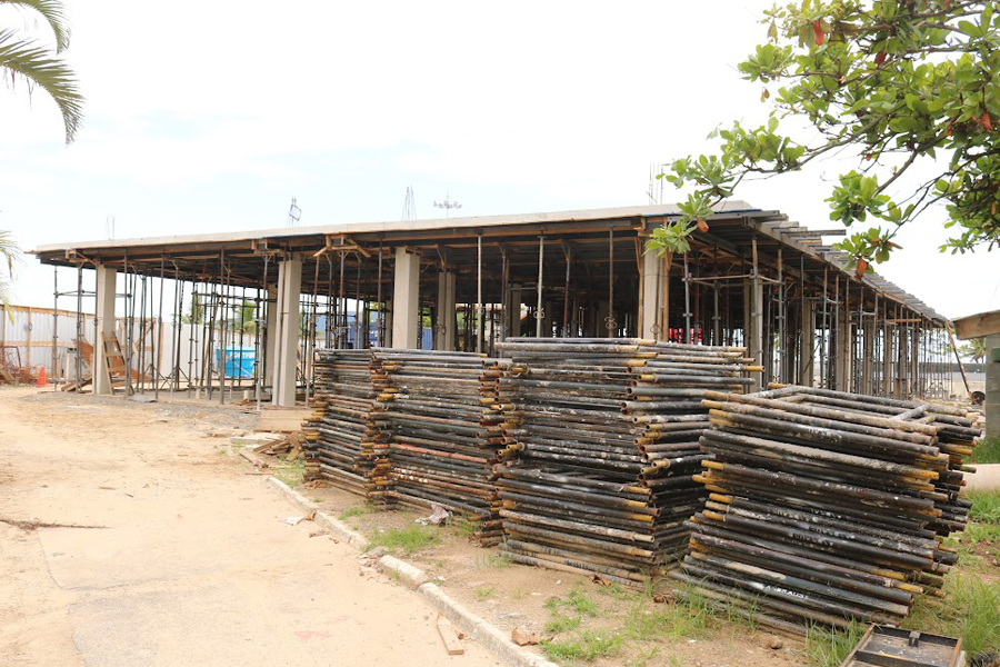 O prazo contratual para as obras, a cargo da empreiteira TMK, vencedora da concorrência pública, é até o final do semestre. No final do ano passado, foram executadas as fundações, pilares e a laje do piso térreo do prédio.