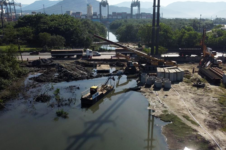 Os tubos servirão para o deságue da futura estação de bombeamento, a ser construída pela Prefeitura, dentro do Programa Santos Novos Tempos, com aprovação do Ministério do Desenvolvimento Regional.
