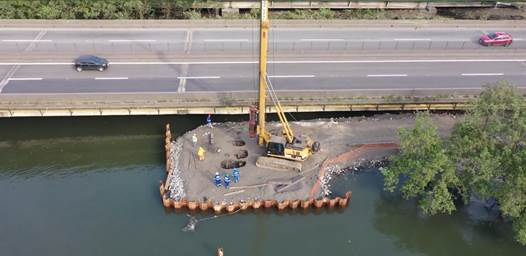 - 800 mil quilos de estacas metálicas para sustentação do viaduto e alargamento de ponte;