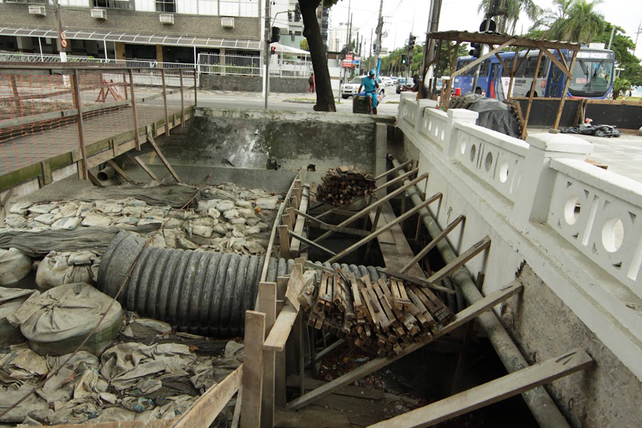A intervenção abrange toda a área do pontilhão – as duas pistas da Av. Presidente Wilson, sentido Ponta da Praia e sentido José Menino, incluindo o canteiro central. É uma área de 400m² – 15 metros de extensão por 39 metros de largura – que compõe a estrutura, construção anterior a 1960.