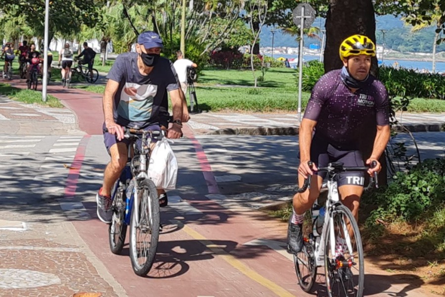 No entanto, na ciclovia também foram registrados flagrantes de pessoas andando sem a proteção facial.