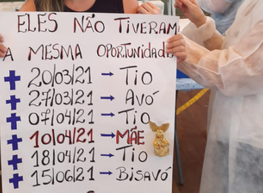 Adolescente homenageia 6 parentes mortos por covid ao se vacinar em Santos