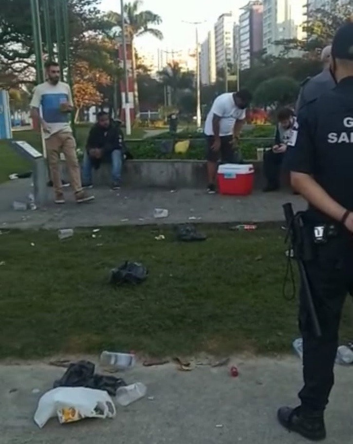 Aglomeração com 150 pessoas deixa jardim da praia cheio de lixo