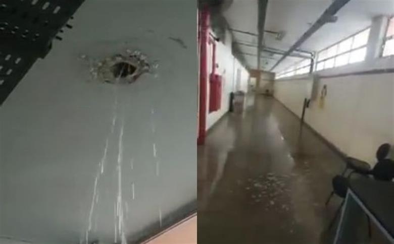 Escola teria voltado às aulas presenciais com o problema de goteiras, trazendo risco aos alunos.