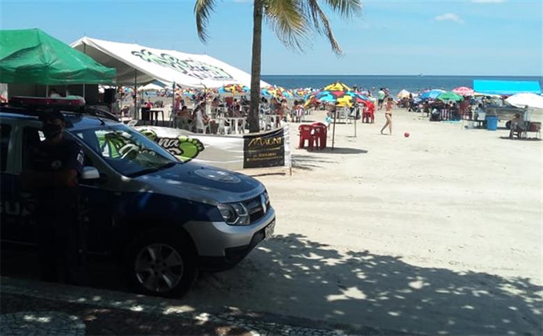 Barraca é intimada por aglomeração durante evento na praia de Santos