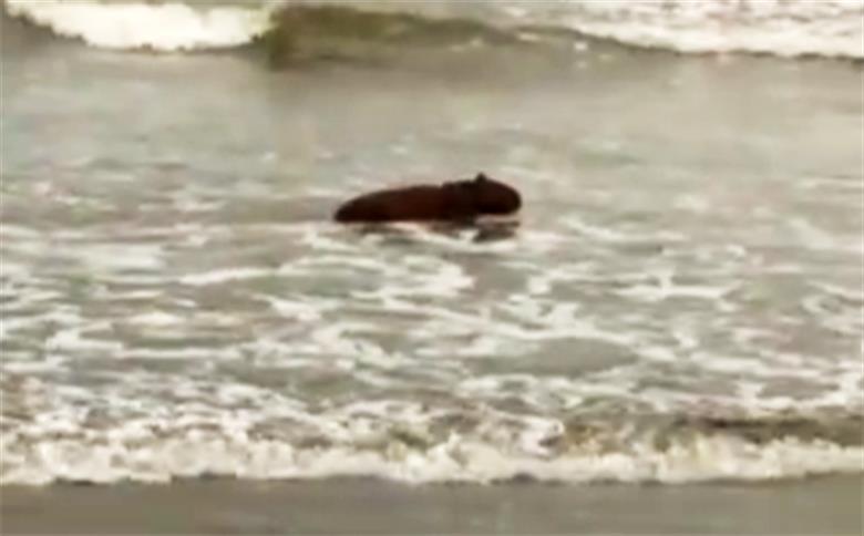Capivara é flagrada nadando no mar de praia em Santos; veja o vídeo