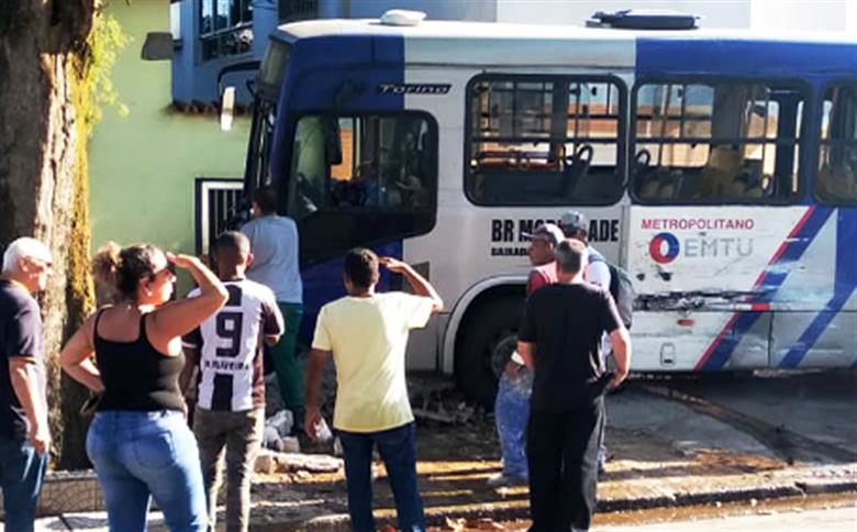 Motorista fica ferido após acidente envolvendo ônibus e caminhão em Santos