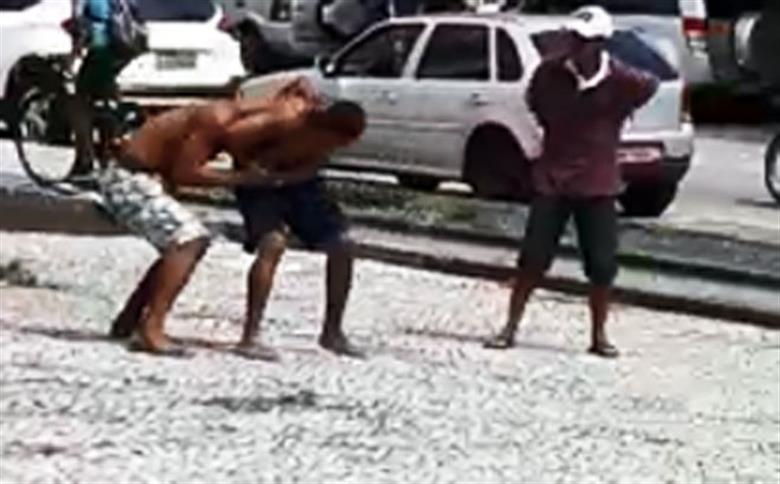 Uma briga envolvendo dois moradores em situação de rua na Praça dos Andradas chamou a atenção das pessoas que passavam pelo local nesta quinta-feira (11), no Centro de Santos.