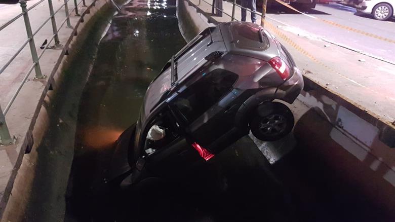 Um motorista perdeu o controle do carro e caiu dentro do canal 4, em Santos. O acidente ocorreu na noite de ontem (27), por volta das 23h.