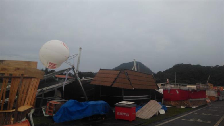 Ventania derruba tendas da Estação Verão Show em Praia Grande