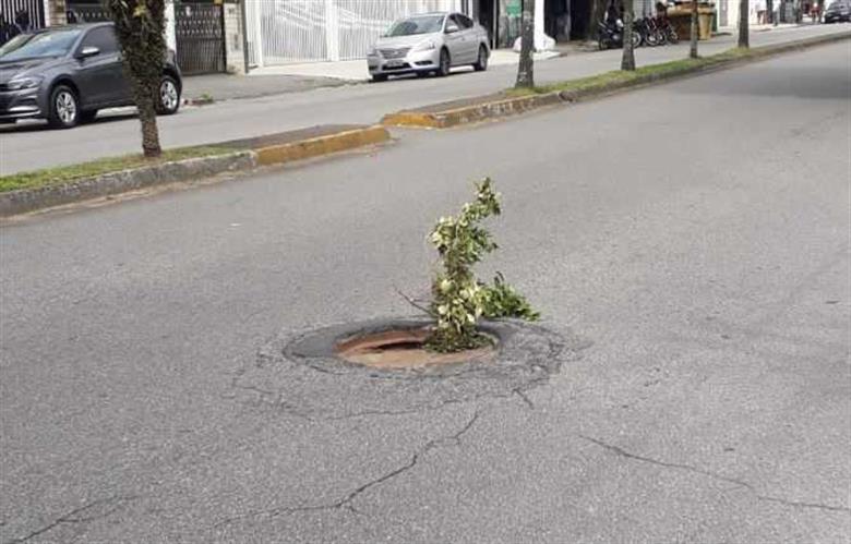 Buraco na Avenida Pedro Lessa chama atenção de motoristas em Santos