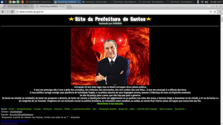 Hackers invadem site da Prefeitura de Santos em forma de protesto contra a corrupção