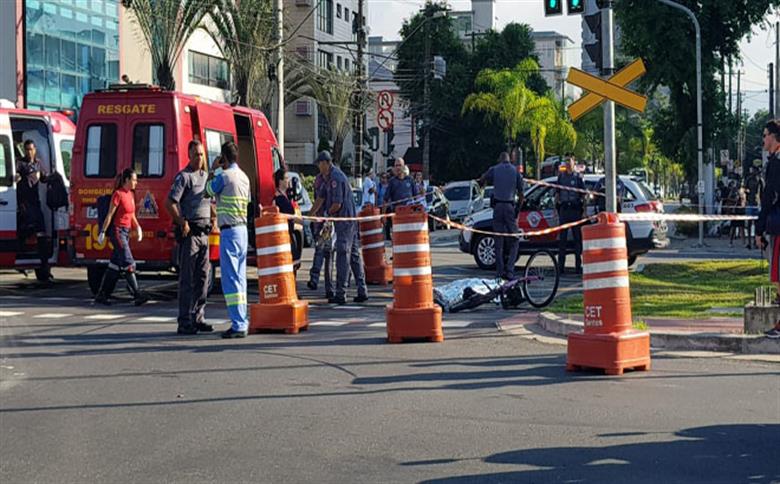 Ciclista morre atropelada por ônibus na Avenida Afonso Pena em Santos