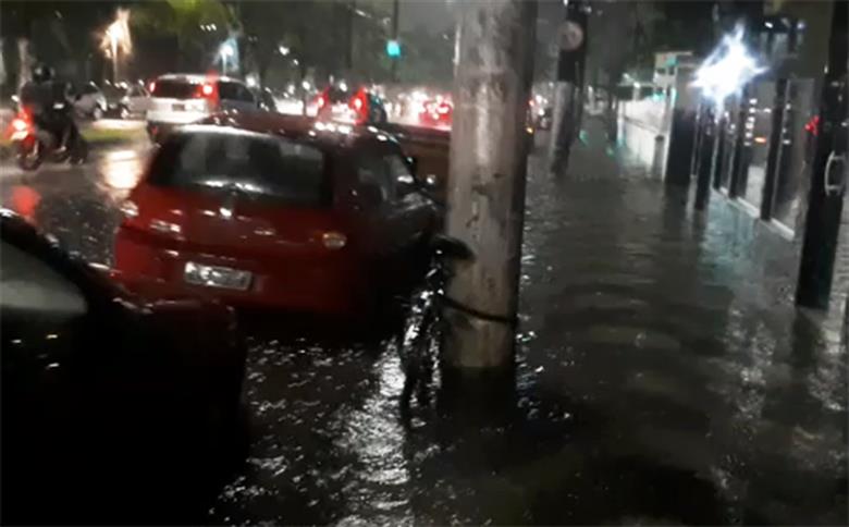 Ruas e avenidas de Santos ficaram alagadas e algumas vias chegaram a ficar sem luz com a forte chuva que caiu na região na noite desta terça-feira (27).
