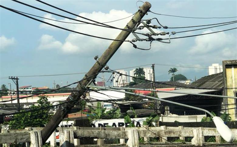 Poste cai e pista é interditada após forte chuva em morro de Santos