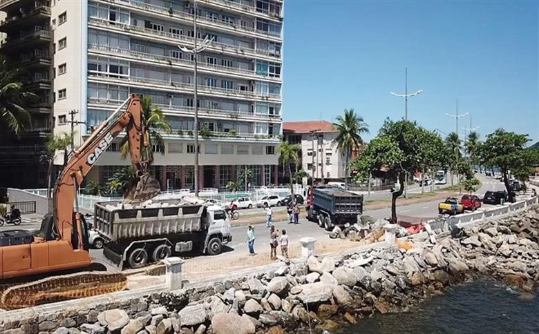 Projeto piloto contra erosão na Ponta da Praia tem movimentação de pedras nesta sexta-feira (23)