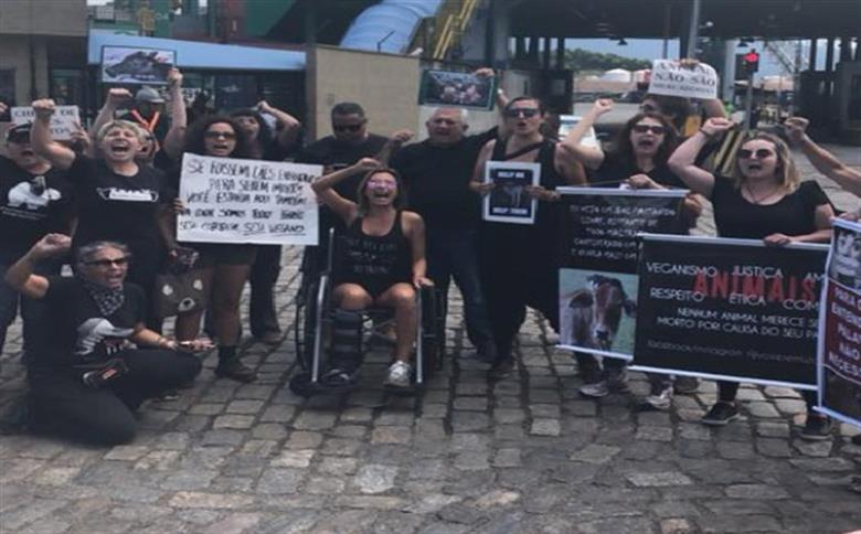 Ativistas exigem o desembarque dos 27 mil bois de navio atracado no Porto de Santos
