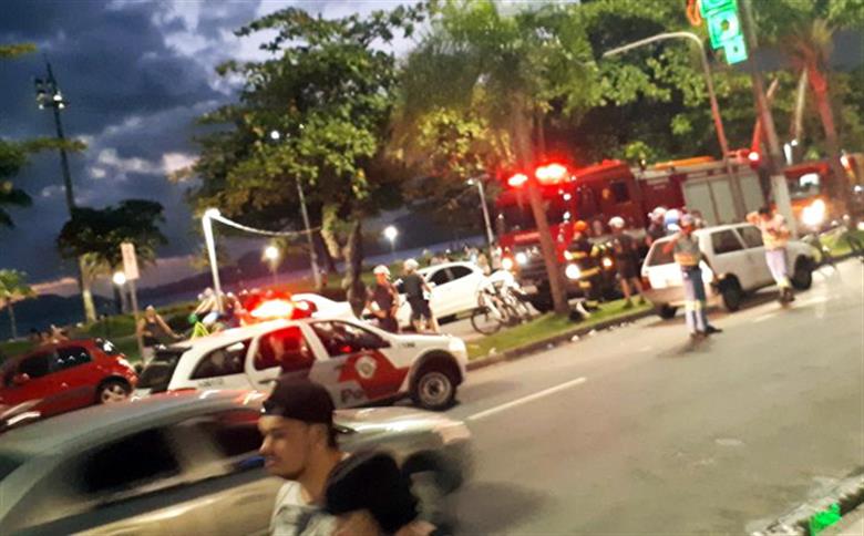 Motociclista atropela pedestre em avenida movimentada de Santos e ambos são levados para hospital