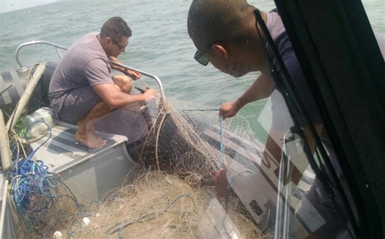 Segundo a polícia, as redes são um perigo para a navegação pelo risco de ficarem presas em hélices de embarcações.