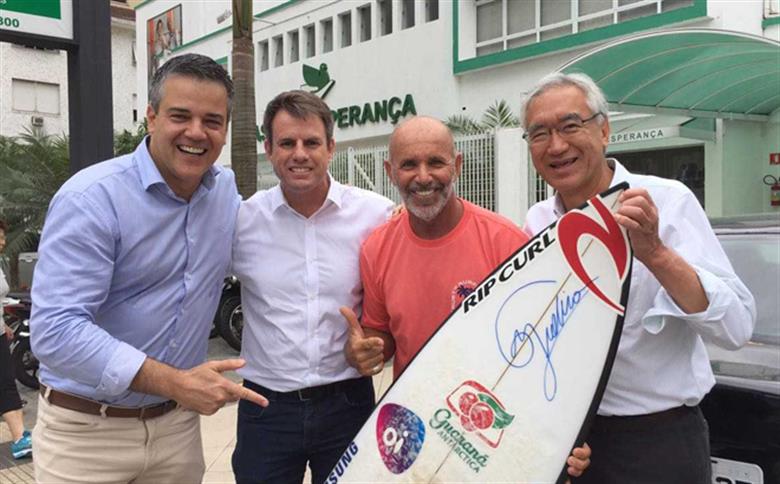 Medina autografa prancha que arrecadará recursos para beneficiar crianças na Casa da Esperança