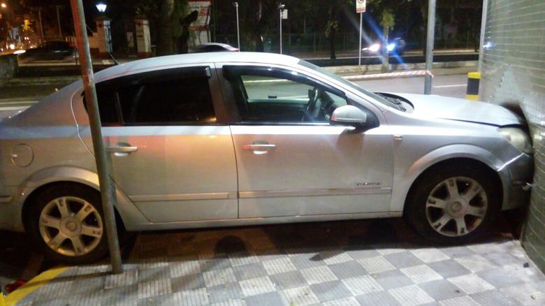 Após colisão com outro carro, veículo afunda parede de clínica médica em Santos