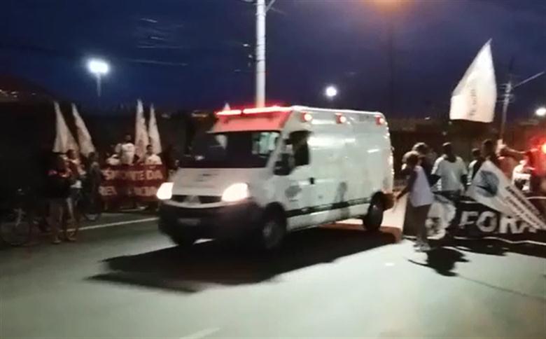 O protesto no local foi liberado após uma conversa entre os manifestantes e a Polícia Militar.