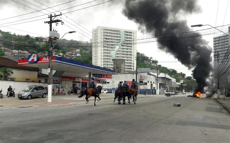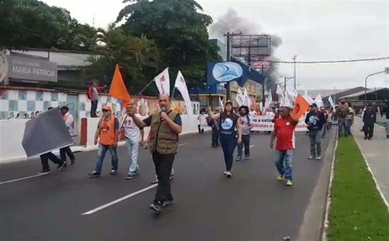 Trabalhador que tentava passar a pé pela Martins Fontes, em Santos, é impedido pelos manifestantes