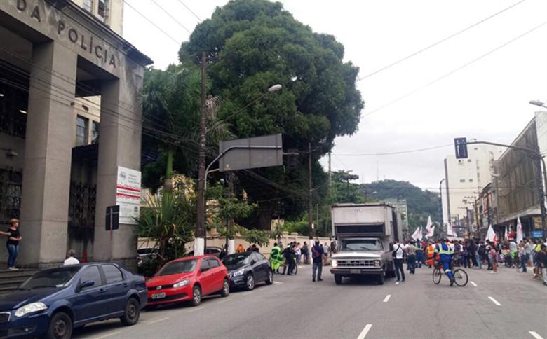 Estivadores detidos durante protesto são levados para o 1º DP de Santos