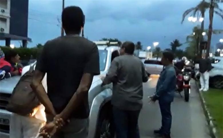 Manifestantes impedem motorista a passar pela avenida da praia, em Santos. Veja vídeo