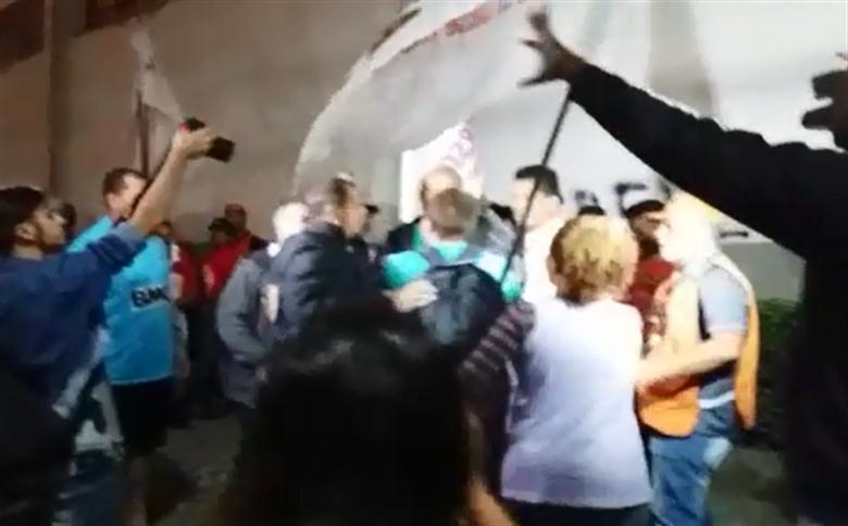 Os manifestantes não deixaram o trabalhador passar pelo local.