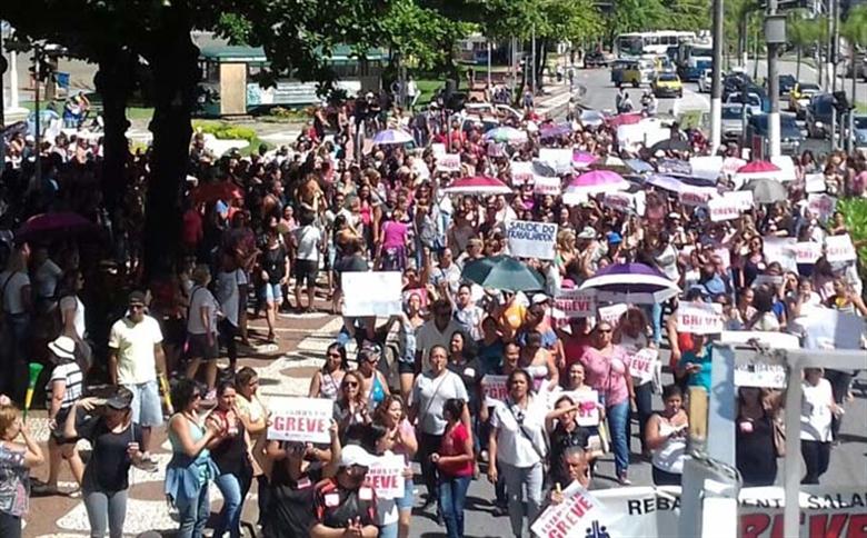 Servidores de Santos fazem passeata na avenida da praia no 12° dia de greve