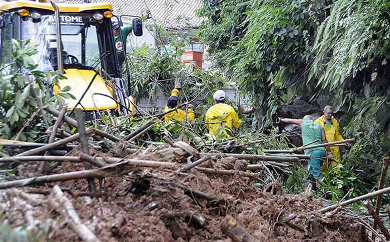 Equipes da Prefeitura trabalham para desobstrução de via no Morro São Bento