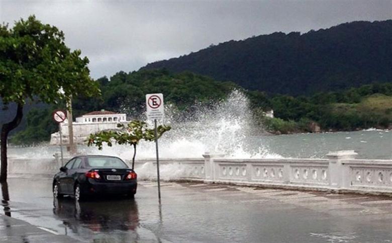 Maré alta atrasa balsas e provoca alagamentos em bairros de Santos
