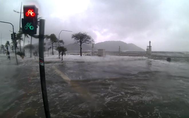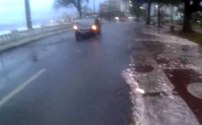 A ressaca de domingo (21) deixou a orla da praia sem a mureta, pedras, folhagens e lixo espalhados pelas ruas. A água invadiu a avenida Saldanha da Gama, nos dois sentidos.