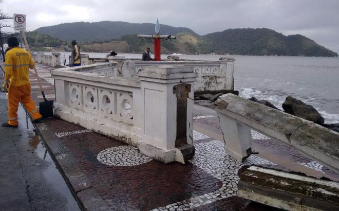 Estragos causados pela ressaca de domingo estão visíveis em Santos