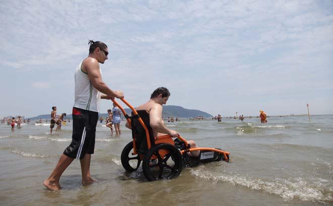 Deficientes físicos ou pessoas que apresentam dificuldade em se locomover podem utilizar as cadeiras anfíbias do "Praia Acessível" e desfrutar do banho de mar, acompanhados de monitores.