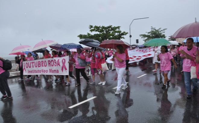 Nem a chuva espantou os cerca de 2.500 participantes da 6ª Caminhada do Outubro Rosa, na manhã de domingo (18).