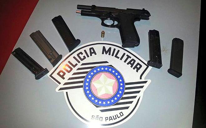 Soldados da Polícia Militar, do DP situado na Zona Noroeste de Santos (SP), apreenderam uma pistola 40 PT 100, com numeração raspada, mais cinco carregadores de armas de fogo.