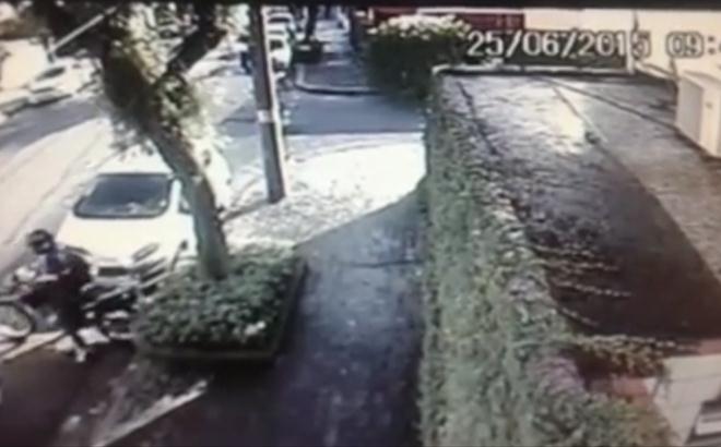 Vídeo flagra dupla roubando motocicleta no bairro Boqueirão, em Santos