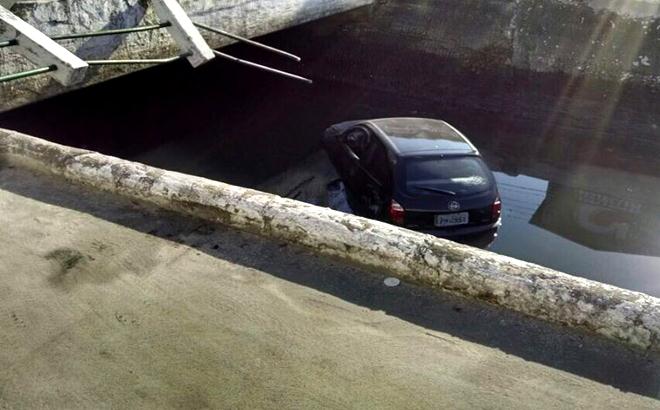 Um carro foi parar dentro do canal da Avenida Jovino de Mello, na Zona Noroeste, na manhã desta segunda-feira (29). O acidente aconteceu por volta das 7h30, após a motorista desviar de uma motocicleta e perder o controle do automóvel.