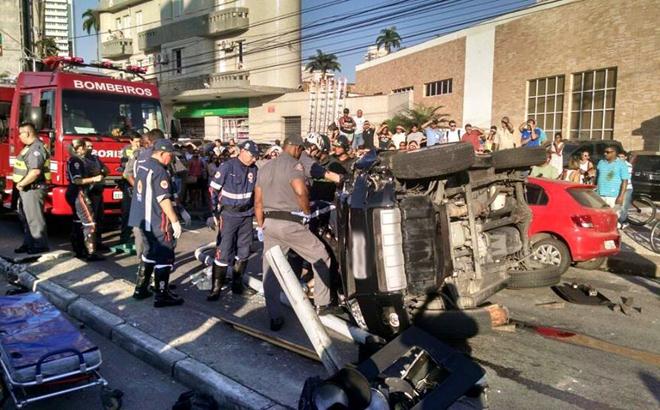Carro colide com poste de sinalização e capota na avenida Francisco Glicério