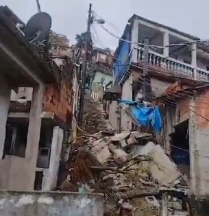 Muro desaba e danifica três casas no Morro do Saboó, em Santos; Vídeo