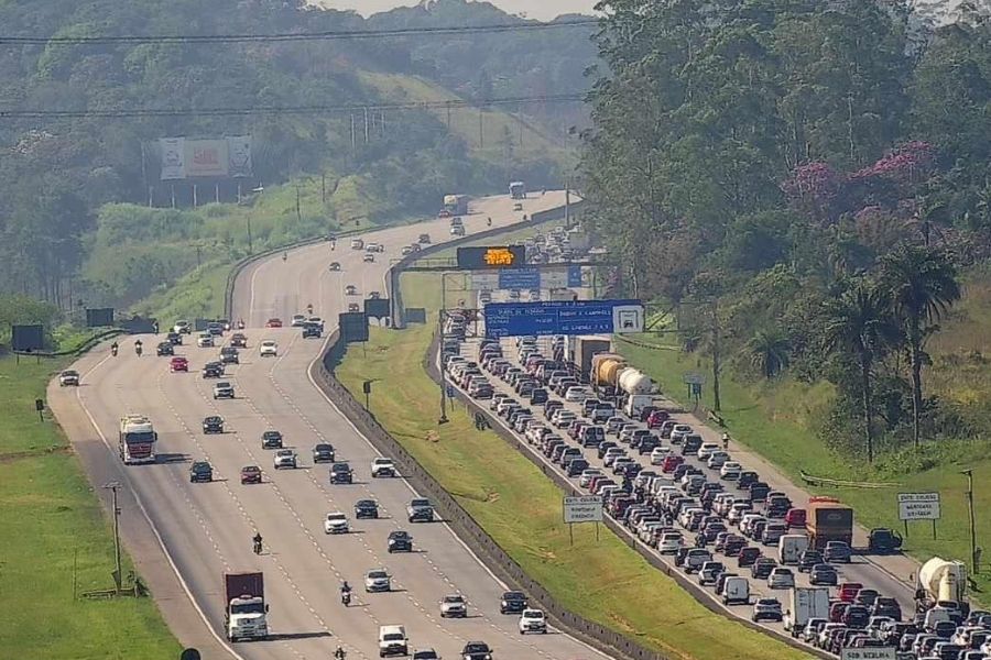 Motoristas enfrentam congestionamento sentido Baixada Santista